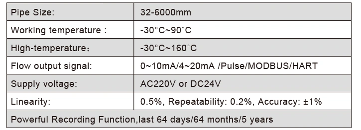 | Temperature | Host: -20~60; Flow sensor: -30~ 160 | ||