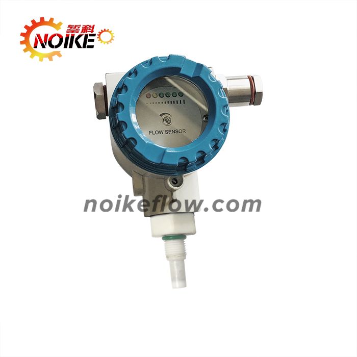 NK33EX-600系列熱導(dǎo)式流量開(kāi)關(guān)是基于熱交換原理設(shè)計(jì)的。探頭內(nèi)置發(fā)熱模塊及感熱模塊,流量開(kāi)關(guān)的熱傳導(dǎo)同介質(zhì)的流速密切相關(guān),測(cè)量時(shí),由發(fā)熱模塊發(fā)出熱量,如果管道內(nèi)沒(méi)有介質(zhì)流動(dòng),則感熱模塊接收到的熱量是一個(gè)固定值,當(dāng)有介質(zhì)流動(dòng)時(shí),感熱模塊所接收到的熱量將隨介質(zhì)的流速變化而變化,感熱模塊將這溫差信號(hào)轉(zhuǎn)化成電信號(hào),再通過(guò)處理器將其轉(zhuǎn)換為對(duì)應(yīng)的標(biāo)準(zhǔn)模擬量信號(hào)或接點(diǎn)信號(hào)輸出,流量開(kāi)關(guān)通過(guò)這個(gè)信號(hào)對(duì)介質(zhì)的流速進(jìn)行顯示及控制。